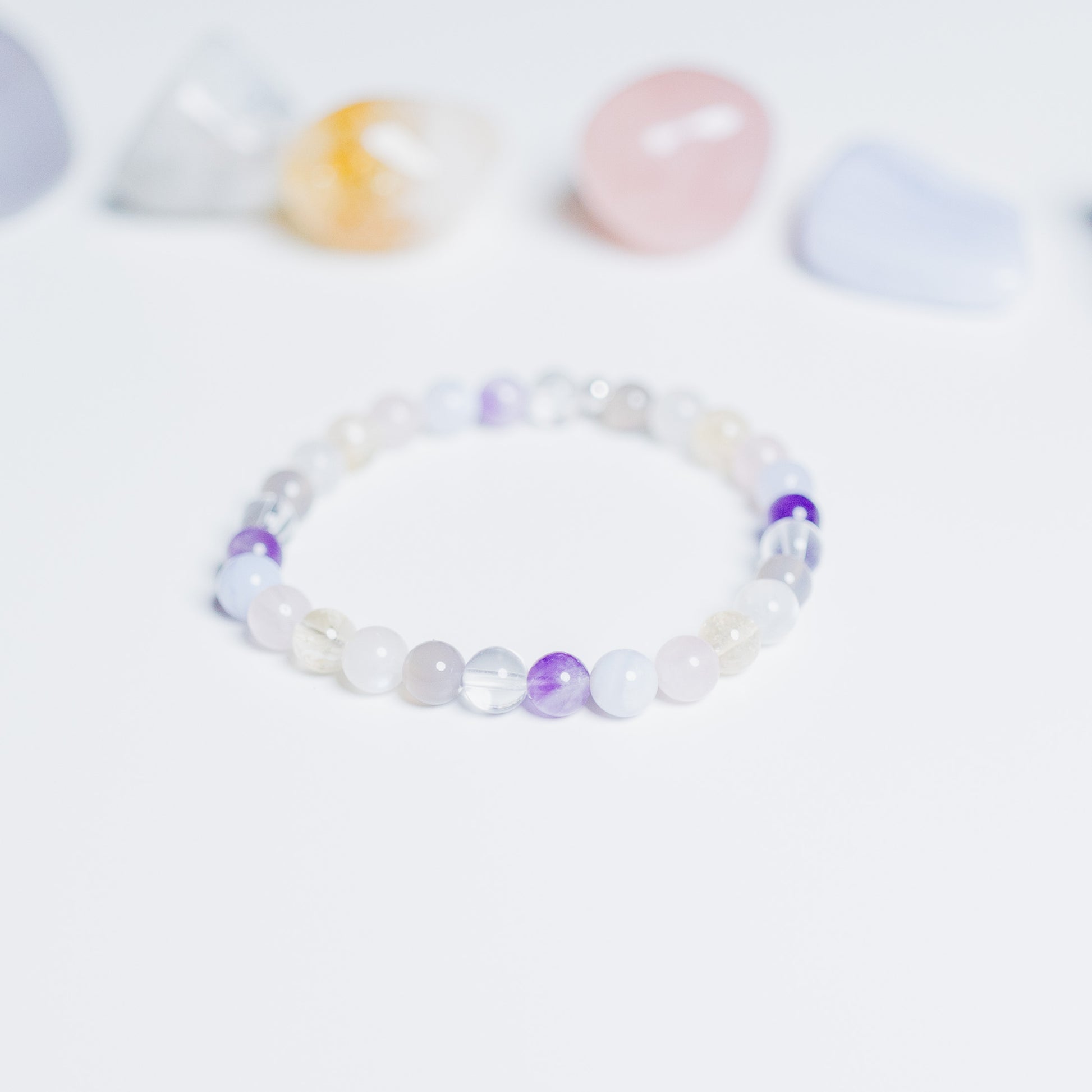 Steine: Achat, Mondstein weiß, Citrin, Rosenquarz, Chalcedon, Amethyst & Bergkristall (6 mm)*